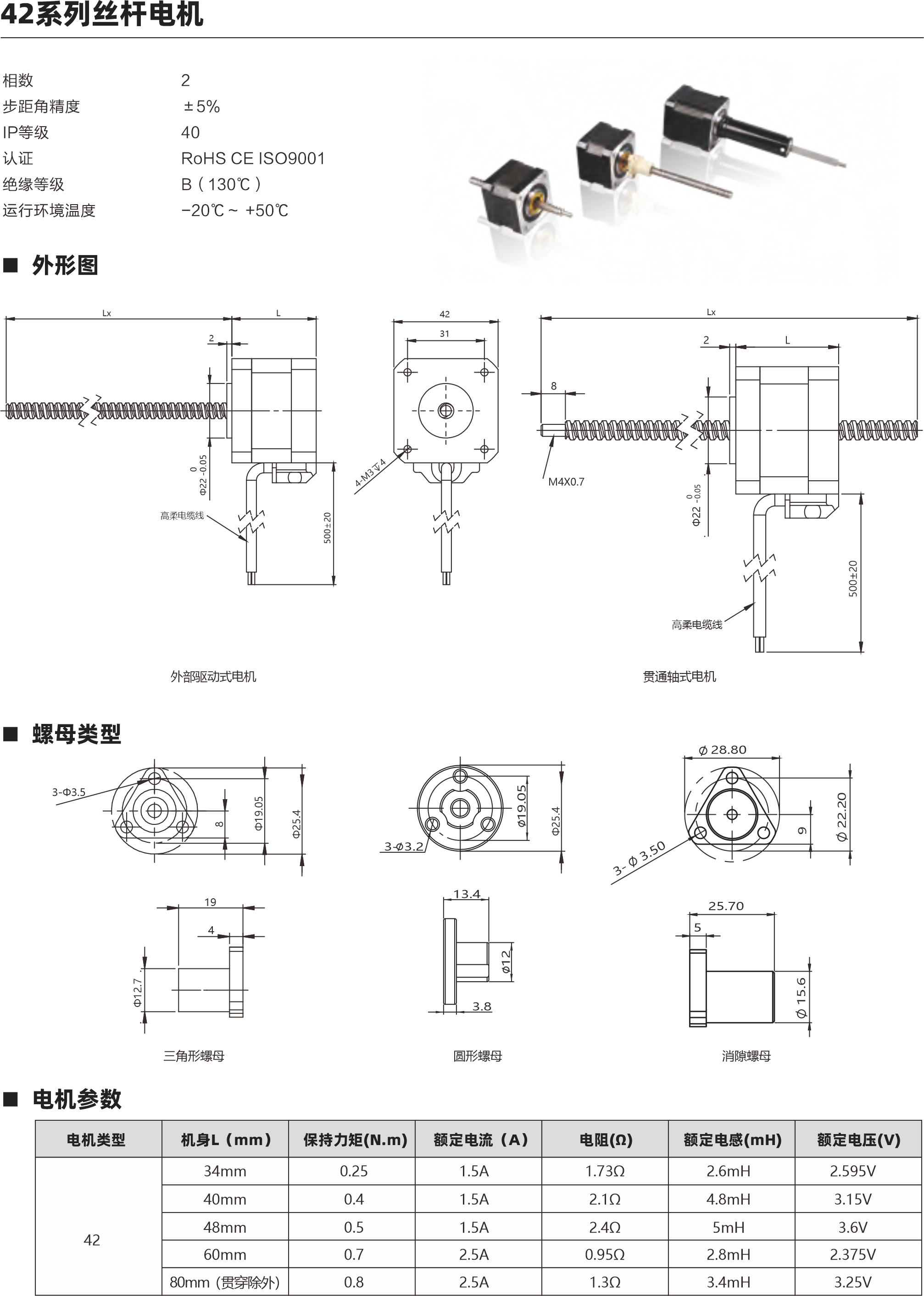立成42機座外驅(qū)式絲桿電機是一種采用42機座安裝,外置驅(qū)動器的絲桿電機。其特點包括: