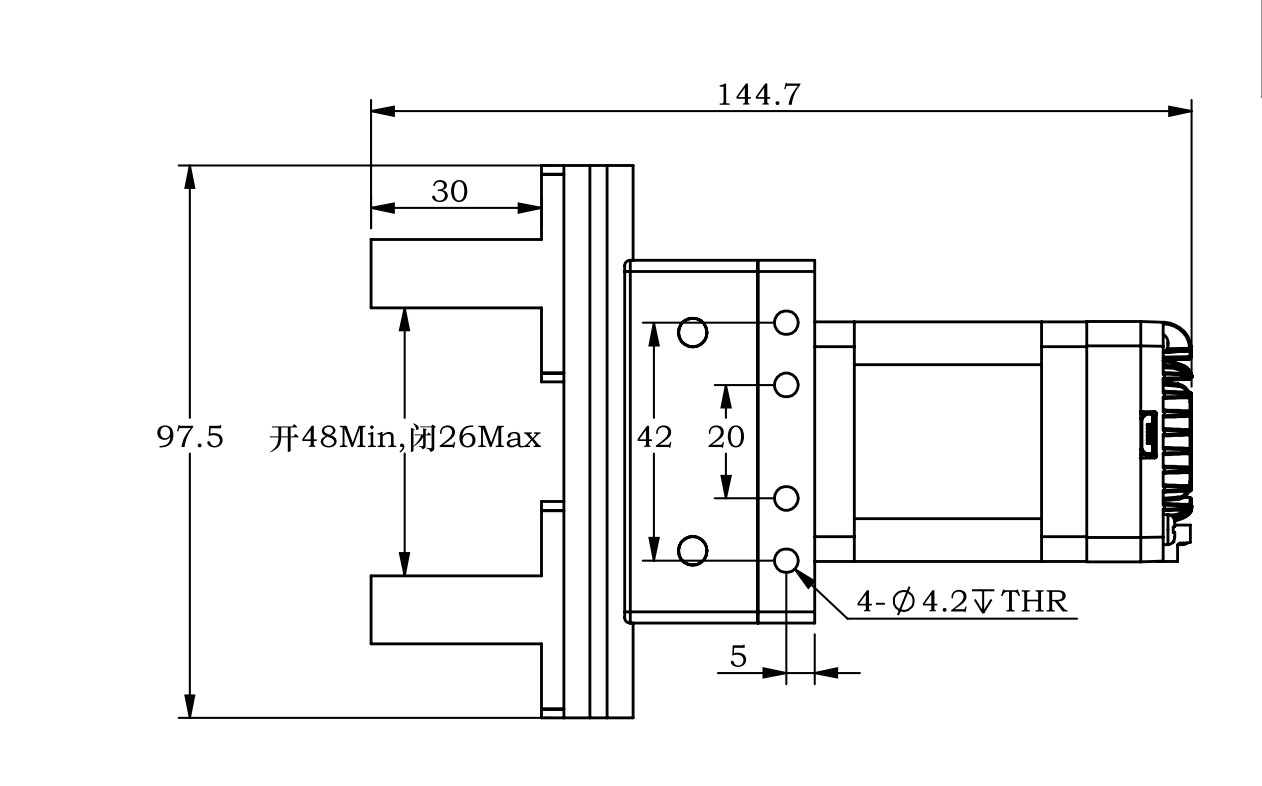 ## 集成一體化優(yōu)勢盡顯 傳統(tǒng)分體夾爪由多個獨(dú)立部件組成,如驅(qū)動器、電機(jī)、控制器等,各部件之間需要繁瑣的布線和安裝調(diào)試,不僅占用大量空間,還增加了故障風(fēng)險和維護(hù)成本。集成式步進(jìn)伺服電動夾爪則將這些功能高度集成于一體,體積小巧緊湊。從資料中的尺寸數(shù)據(jù)可知,其整體結(jié)構(gòu)精致,僅重約0.2Kg,能夠輕松安裝在各種自動化設(shè)備上,節(jié)省了寶貴的安裝空間,減少了設(shè)備整體體積,為生產(chǎn)線的布局優(yōu)化提供了便利。這種集成一體化設(shè)計(jì)大大簡化了系統(tǒng)架構(gòu),減少了部件之間的連接環(huán)節(jié),降低了因連接松動等問題導(dǎo)致的故障概率,提高了系統(tǒng)的穩(wěn)定性和可靠性,使得設(shè)備運(yùn)行更加穩(wěn)定高效,有效減少了維護(hù)工作量和停機(jī)時間。 ## 精準(zhǔn)位置控制與快速響應(yīng),遠(yuǎn)超傳統(tǒng) 傳統(tǒng)分體夾爪在位置控制精度上往往難以滿足高精度生產(chǎn)需求,其定位誤差較大,容易導(dǎo)致抓取位置不準(zhǔn)確,影響產(chǎn)品質(zhì)量。而集成式步進(jìn)伺服電動夾爪配備了1000線(4000 Counts)編碼器反饋系統(tǒng),能夠?qū)崿F(xiàn)極其精準(zhǔn)的位置控制。每旋轉(zhuǎn)一圈,編碼器可產(chǎn)生4000個計(jì)數(shù),通過精確的反饋機(jī)制,設(shè)備能夠?qū)崟r監(jiān)測夾爪的位置,并根據(jù)預(yù)設(shè)指令進(jìn)行精準(zhǔn)調(diào)整,定位精度極高。在抓取微小零部件時,能夠準(zhǔn)確無誤地完成操作,有效避免了因位置偏差導(dǎo)致的抓取失誤。